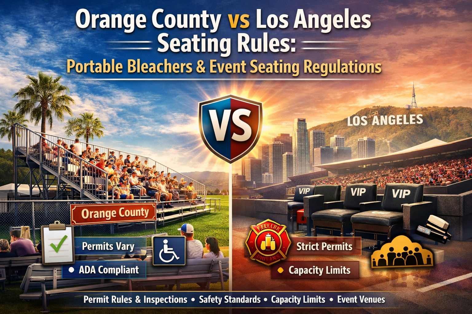Planning events in Southern California—such as sports tournaments, school graduations, concerts, or large community festivals—requires a clear understanding of local seating rules and regulations. While both Los Angeles and Orange County offer similar venues, each jurisdiction has unique requirements for temporary bleachers, courtside seating, and public safety compliance.