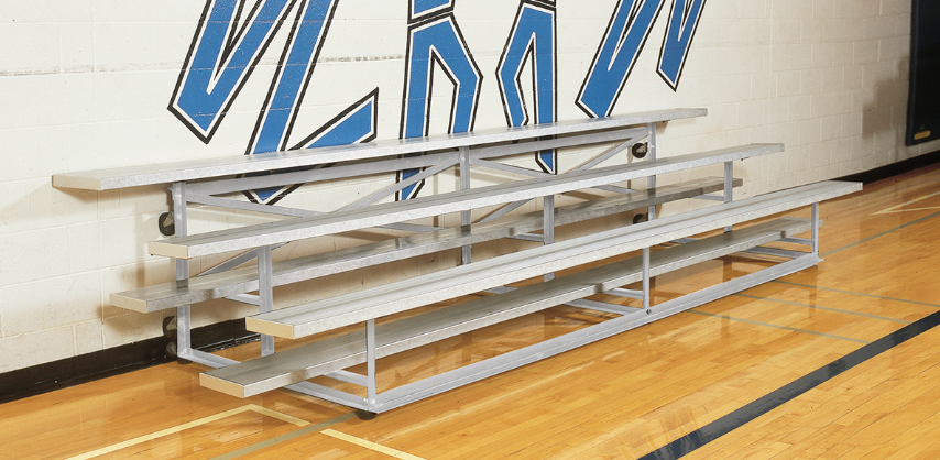 Schools host events both indoors and outdoors, and bleacher selection depends on the venue.
